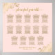 Ce magnifique tableau de sièges mariages comprend des assignations de table pour 140 personnes à 14 tables. Le design sobre et élégant présente du texte doré sur un arrière - plan de couleur rose pâle avec un titre de calligraphie en dentelle. Les coins sont décorés d'un faux fil frileux avec des boucles et des tourbillons. Une façon élégante, chic et sophistiquée d'aider vos clients à trouver leur place à la réception.