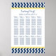 Chic et contemporain personnalisable quinze table 150 places assises pour mariage dans moderne bleu marine foncé, jaune clair et blanc rétro chevron zigzags motif. Customisez avec le nom de vos invités pour créer un tableau de sièges unique pour votre mariage. Contactez-nous pour un tableau personnalisé pour un nombre différent de clients.