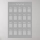 Jusqu'à 20 La disposition de la table, établie par le numéro de la table et non par le nom, avec jusqu'à 12 personnes par table. Un simple texte blanc sur le gris (l'arrière - plan est personnalisable); cliquez sur "customiser" pour déplacer les colonnes, modifier les polices, les couleurs, la couleur arrière - plan ou la taille de l'affiche. Texte noir sur les versions colorées également disponible. Cliquez et faites glisser sur les tables (en commençant par la page) pour déplacer plusieurs tables à la fois.