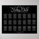 Faites de votre réception de mariage une belle avec ce tableau de 21 places. Conçu dans le cadre de notre Silver Foil Elegant Wedding Suite, il présente un design simple mais élégant avec du texte gris argenté pâle sur un arrière - plan noir avec une bordure florale en faux feuille argent. Ce graphique montre les affectations de table afin que vos invités aient un temps facile à trouver la bonne table.
