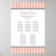 Elégante et contemporaine personnalisable cinq tables de table pour mariage dans moderne pêche rose orange, gris et blanc fun et rétro chevron zigzags bandes motif. Customisez avec le nom de vos invités pour créer un tableau de sièges unique pour votre mariage. Contactez-nous pour un tableau personnalisé pour un nombre différent de clients.