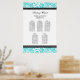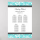Elégante et contemporaine personnalisable cinq tables de table pour mariage en moderne turquoise turquoise bleu, noir et blanc classique damassé motif vintage. Customisez avec le nom de vos invités pour créer un tableau de sièges unique pour votre mariage. Contactez-nous pour un tableau personnalisé pour un nombre différent de clients.