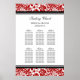 Elégante et contemporaine personnalisable six table 60 invités tableau pour mariage dans moderne rouge, noir et blanc classique damassé vintage motif. Customisez avec le nom de vos invités pour créer un tableau de sièges unique pour votre mariage. Contactez-nous pour un tableau personnalisé pour un nombre différent de clients.
