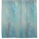 Souvent des touches de bleu doux et de teintes multicolores abstrait rideau de douche d'art. Idéal pour une salle de bain moderne. Peinture mélangée moderne en acrylique par Sarah Trett. www.sarahtrett.com pour www.mylittleeden.com