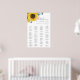 Cette affiche alphabétique de chaises de tournesol rustique est parfaite pour un mariage campagnard. Ce panneau peut être utilisé pour organiser vos invités par ordre alphabétique ou par numéro de table en changeant le nom des en-têtes. Le design floral bohème présente des tournesols jaunes, des fleurs roses rousses et une végétation d'eucalyptus vert chasseur dans l'aquarelle avec une élégante touche moderne de saumonier. Ce poster mariage peut accueillir jusqu'à 120 personnes. Faites place à plus (ou moins) de clients en cliquant sur le bouton "personnaliser" et diminuez ou augmentez la taille de la police. En plus du placement de chaque invité, personnalisez ce panneau avec les noms de la mariée et du marié et la date du mariage.