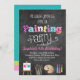 Notre invitation originale, best-seller, Painting Art Party Chalkboard style anniversaire de fête est l'invitation parfait pour toute soirée à thème art et peinture. Notre design comprend un arrière - plan de tableau noir, un mélange de lettres motifs amusantes comme des pois, des rayures et des chevrons, ainsi que des illustrations et des graphiques d'art comme un chevalet d'artiste, une palette de peinture et des pinceaux.