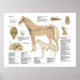 Carte anatomique du système nerveux du cheval portant une description. Section transversale du cerveau et des nerfs crâniens. Nerfs de la queue et du sabot.