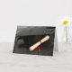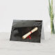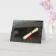 Carte de graduation avec mortier, diplôme avec rubans rouges et robe de graduation.