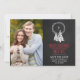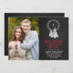 Cette couronne de fer à tableau noir enregistrer la date de Noël carte photo double comme un accueil de vacances et une enregistrer la carte de date. Le design comprend votre photo fiançailles, et une couronne avec votre dernier monogramme initial superposé de noël blanc décoré sur un arrière - plan d'art de la craie. Sur la carte on peut lire "joyeux noël de m et de mrs". Personnalisez la carte avec vos noms et votre date de mariage.