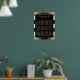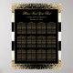 Élégant tableau de mariage rayé noir et blanc pour 12 tables avec détails de mariage à l'intérieur d'un cadre doré sur fond noir et blanc orné de confettis dorés. Articles assortis disponibles.