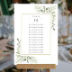 Tableau de numéros de table avec verdure élégante