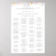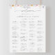 Ce plan de table alphabétique à fleurs sauvages de couleur printanière est parfait pour un mariage rustique. Le design présente une écriture calligraphique élégante, qui lit « mariage » en gris atténué, des fleurs sauvages violettes, violettes, bordeaux, rouges, roses, blush, jaunes peintes à l'aquarelle, des feuilles vertes assemblées en motifs floraux sans couture.