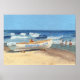 Atlantic City Beach Peinture à l'huile avec bateau.
