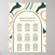 Le "Retro Swirl Arch Mariage Seating Chart" est une oeuvre d'art fonctionnelle qui apporte à l'organisation une touche chic. Le décor de crème douce est juxtaposé à un motif tourbillon accrocheur dans les tons vert menthe et rose, incarnant un charme vintage avec une touche moderne. Le design voûté encadre élégamment les noms du couple et les aménagements des sièges, guidant les invités vers leurs tables désignées avec facilité et style. Ce tableau de sièges est l'ajout parfait à un mariage qui célèbre à la fois la beauté intemporelle du passé et l'excitation d'un avenir partagé.