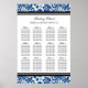 Elégante et contemporaine personnalisable douze table 96 places assises invités pour mariage dans moderne bleu marine foncé, noir et blanc classique damassé floral vintage motif. Customisez avec le nom de vos invités pour créer un tableau de sièges unique pour votre mariage. Contactez-nous pour un tableau personnalisé pour un nombre différent de clients.
