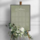 Cette conception présente un panneau de tableau de sièges de mariage de destination tropicale de plage, des feuilles de palmier tropical botanique, une verdure de sauge verte élégante, un feuillage élégant, un tableau de sièges de bienvenue floral de mariage, un nom de numéro de table de sièges d'invité, un script de calligraphie stylé tendance, un texte de police de typographie fantaisiste, un panneau d'affiche de mariage de réception, une décoration de réception de mariage moderne tendance, une décoration de réception de mariage tropical