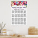 Carte des sièges mariages à fleurs d'aquarelle. S'il vous plaît Trouvez votre siège et les noms des mariés et mariés sont en haut. Très facile de changer le texte modèle en vos noms d'invités. Un magnifique mélange de fleurs violettes et roses avec des touches de pourpre et de bleu. Beaucoup de verdure avec un assortiment de vignes et de feuilles en font un design floral très moderne. Un peu boho chic, à cause de la verdure pendante. Le texte est un violet foncé foncé pour reprendre l'une des tendances de couleur les plus chaudes de la saison. Il complète également parfaitement les fleurs. Facile à customiser. Copiez et passez ce lien dans votre navigateur pour voir tous les éléments de coordination : goo.gl/bDYWnb
