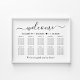 Elégante affiche de table de mariage pour jusqu'à 10 tables qui présente "bienvenue" dans un script chic avec des swashes, vos noms et date mariage réunis par un coeur et "Nous sommes si heureux que vous soyez ici" dans la typographie serif classique. Si vous le souhaitez, sélectionnez l'option de téléchargement numérique à modifier avec des modifications de dernière minute et imprimer localement.