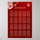 Ce tableau de sièges chinois mariage est orné d'un double symbole de bonheur doré et d'un arrière - plan rouge rubis foncé portant des fleurs rouge violet et crème de pivoine. Avec des textes personnalisés pour 200 noms. Placer des tableaux avec du texte pour moins de clients disponibles et des produits mariages correspondants disponibles.