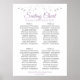 Faites de votre réception de mariage une belle avec ce tableau de 4 places. Dispose d'un design simple mais élégant avec du violet clair ou de la lavande et du texte gris sur un arrière - plan blanc avec une bordure florale en faux feuille d'argent. Ce graphique montre les affectations de table afin que vos invités aient un temps facile à trouver la bonne table.