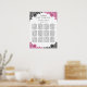 Carte des sièges mariages roses et noirs chauds pour 12 tables en dentelle fleurie élégante.