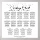 Faites de votre réception de mariage une belle avec ce tableau de sièges. Conçu dans le cadre de notre Silver Foil Elegant Wedding Suite, il présente un design simple mais élégant avec du texte noir sur un arrière - plan blanc avec une bordure florale en faux feuille argent. Ce graphique montre les affectations de table pour 14 tables afin que vos invités aient un temps facile à trouver la bonne table.