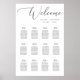 Bienvenue à vos invités mariages avec ce tableau de sièges classique avec calligraphie moderne. Ce poster mariage peut accueillir jusqu'à 120 personnes. Faites de la place pour plus (ou moins) de clients en cliquant sur le bouton "personnaliser" et diminuez ou augmentez la taille de police. Des tables supplémentaires peuvent également être supprimées. En plus du placement de chaque invité, personnalisez ce panneau avec les noms de la mariée et du marié et la date du mariage.