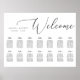 Bienvenue à vos invités mariages avec ce tableau de sièges classique avec calligraphie moderne. Ce poster mariage peut accueillir jusqu'à 120 personnes. Faites de la place pour plus (ou moins) de clients en cliquant sur le bouton "personnaliser" et diminuez ou augmentez la taille de police. Des tables supplémentaires peuvent également être supprimées. En plus du placement de chaque invité, personnalisez ce panneau avec les noms de la mariée et du marié et la date du mariage.