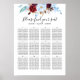 Carte des sièges mariages à fleurs couleur bleu et bordeaux