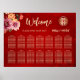 Ce tableau de sièges chinois traditionnel comporte des fleurs chinoises colorées, un symbole de bonheur double or et un texte de bienvenue dans un élégant script manuscrit sur un arrière - plan rouge floral chatoyant. Avec 140 noms personnalisés dans une police sans serif moderne.