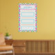 Affiche imprimable pour suivre les objectifs et les habitudes de la fille bleue avec TDAH. Accrochez-la sur votre réfrigérateur, armoire de classement, panneau d'affichage, mur ou étagère. Modifiez le titre en haut comme vous le souhaitez en utilisant le bouton Personnaliser. Il y a de la place en haut pour écrire votre thème principal de résolution du Nouvel An et la date. Au milieu, il y a de la place pour écrire trois tâches, sur deux lignes bleues clair chacune. Avec trois cases orange en dessous de chaque série de lignes, pour comptabiliser chaque fois que vous avez accompli l'habitude. La bordure est un motif géométrique amusant et joli en bleu et orange. Utile pour les adultes et les enfants qui ont un TDAH et ont besoin de rappels visuels ou d'astuces pour se souvenir de ce qu'ils doivent faire ou des objectifs qu'ils veulent atteindre. Il comporte des espaces vierges pour que vous puissiez utiliser un marqueur effaçable pour le remplir. Idéal pour les personnes qui aiment s'organiser ou planifier, ou pour enseigner à la maison, faire les devoirs ou suivre la révision des examens. Fait un j