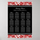 Elégante et contemporaine personnalisable douze table 96 places assises invités pour mariage en rouge moderne, noir et blanc classique damassé vintage motif. Customisez avec le nom de vos invités pour créer un tableau de sièges unique pour votre mariage. Contactez-nous pour un tableau personnalisé pour un nombre différent de clients.