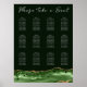 Tableau des sièges de la table Mariage d'âge vert. Couleurs de police de script avec une police de nom serif facile à lire. Facile à adapter à vos besoins mariages. Cartes de table mariage personnalisées.