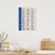 Simple à personnaliser, ce poster de classement mariage Marseille Bleu 210 peut accueillir votre réception de mariage jusqu'à 210 invités et vous pouvez choisir votre propre format, de l'alphabétique au par numéro de table. Cette affiche minimaliste de plan de table mariage design se prête bien aux thèmes mariages modernes ainsi qu'aux thèmes mariages décontractés ou autres événements, avec la bordure bleu marine à gauche et 3 colonnes de texte bleu profond sur un arrière - plan ecru doux. Chacune des 3 colonnes a 70 lignes chacune, donc si vous choisissez de formater votre tableau de plan de table par ordre alphabétique sans sauts de ligne entre les noms, vous pouvez accueillir 210 invités mariages. Si vous préférez des espaces entre les groupes de lettres, avec ou sans en-têtes, cela diminuera bien sûr le nombre d'invités. Avec ce choix de votre propre format de mariage, vous pouvez également organiser le tableau par numéros de table pour les tables de 6, 8 ou 12 invités, ainsi que 10 et peut même mélanger les tailles de table si c'est ce que votre lieu a à disposition. La palette classique de couleurs à deux tons bleu marine et écru est un choix intelligent pour toutes les saisons, de l'automne et l'hiver aux mariages du printemps et de l'été. Customisez cette affiche personnalisée Marseille Bleu pour votre réception de mariage de 210 personnes ou autre événement spécial et si vous avez un mariage plus grand à organiser, il suffit de customiser et de commander 2 ou 3 chaises.