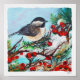 Pickadee Noir Cappé Avec Baies Sur L'Impression De L'Art De Branche. Une adorable peinture de poule d'hiver. Parfait pour les amoureux de la nature et des oiseaux ! Cette oeuvre d'art est également disponible sur d'autres produits pour le mixage et la mise en correspondance de l'artiste Jenn Steffen.