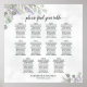 Ce tableau rustique de 11 places mariage comprend l'assignation de tables pour 110 personnes avec 10 places par table. L'élégant design boho chic présente des fleurs de lavande peintes à la main et des feuilles d'eucalyptus dans les tons vert sauge et violet. Le titre de calligraphie du script de dentelle dit : Veuillez trouver votre table, et les noms du couple et de la date mariage apparaissent en bas. Une façon merveilleuse d'aider vos invités à trouver leurs sièges tout en ajoutant élégance et style à votre réception.