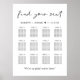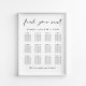 Poster d'affiche moderne téléchargeable pour mariage pour jusqu'à 12 tables avec "Trouvez votre siège" dans un script chic, vos noms et date de mariage réunis par un coeur et "Nous sommes si heureux que vous soyez ici" dans la typographie serif classique. Vous pouvez sélectionner l'option de téléchargement numérique à modifier avec des modifications de dernière minute et imprimer localement.
