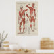 Affiche anatomique musculaire créée avec des illustrations anatomiques vintages de : Montre 68 muscles marqués de l'aspect antérieur et postérieur du corps humain. Vue sur l'intérieur et l'arrière.