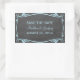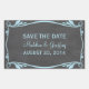 Elégant et tendance panneau de signalisation Flourish Save the Date Stickers avec un look arrière - plan de tableau de bord et une bordure design tourbillon et feuille art déco en bleu clair. Facile à customiser, il suffit d'ajouter les détails de votre mariage. Cliquez sur "Customiser" pour trouver d'autres options de personnalisation.