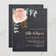 Arrière - plan de tableau de bord. Décoré d'un grand or rose et rose vif floral, fleur rose et feuilles d'eucalyptus vert couleur eau, sprigs, verdure et un faux sprig d'or. Personnalisez et ajoutez votre nom et les détails de votre fête. 1 feuille = 1 invite imprimé bord à bord.