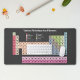 Un tapis de bureau noir du Tableau Périodique des Éléments comprenant les 118 éléments atomiques dans des tons pastel et en langue française : un cadeau parfait pour un professeur de chimie ou un étudiant en science !