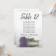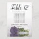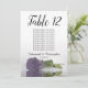Ces belles cartes de numéro de table faciliteront la recherche de sièges à votre réception de mariage. Elles présentent un design simple mais élégant avec des lettres de calligraphie script et un seul rose à long tige couleur violet foncé sur son côté réfléchissant dans l'eau. La carte comprend un tableau de sièges avec 10 noms. Il y a aussi de la place pour les noms du couple et la date du mariage. Cette carte est disponible dans une variété de tailles et est plus grande que nos cartes de numéro de table standard.