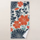Fleurs brillantes écarlate et noir stylisées avec un accent turquoise poussiéreux feuillage sur un arrière - plan couleur lin crée un bel ensemble élégant de serviettes de bain.