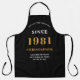 Un tablier noir classique personnalisé pour cette célébration d'anniversaire pour quelqu'un né en 1981 et ayant 40 ans. Ajoutez le nom à ce design vintage de style rétro noir, blanc et or pour un cadeau personnalisé de 40 ans. Modifiez facilement le nom et l'année avec le modèle fourni. Un merveilleux cadeau d'anniversaire noir personnalisé. Plus de cadeaux et de fournitures de fête pour cette 40ème fête dans le magasin.