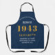 Un tablier bleu classique personnalisé pour cette célébration d'anniversaire pour quelqu'un né en 1943 et ayant 80 ans. Ajoutez le nom à ce design vintage de style rétro bleu, blanc et or pour un cadeau personnalisé de 80 ans. Modifiez facilement le nom et l'année avec le modèle fourni. Un merveilleux cadeau d'anniversaire personnalisé. Plus de cadeaux et de fournitures de fête pour cette 80ème fête dans le magasin.