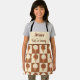 C'est un tablier personnalisé de nom personnalisé pour les enfants et les jeunes chefs avec à damiers mignons cônes de vanille simple et de crème glacée chocolat motif sur des damiers crème et marron. C'est un cadeau parfait pour les enfants qui aiment la glace