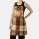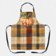 Un heureux citrouille à pois de polka est assis à côté de cet tablier de plaid d'automne. Parfait pour la cuisson à la maison et pendant les vacances comme Thanksgiving.