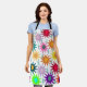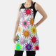 Ce tablier a un design de fleurs et gouttes de pluie sur un arrière - plan blanc.