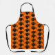 Ce tablier impressionnant présente une araignée noire éffrayante avec huit jambes poilues, des yeux jaunes avec de grands élèves noirs et sa bouche ouverte montrant ses crocs. Il y a un texte orange qui dit "Happy Halloween" et un arrière - plan orange correspondant.