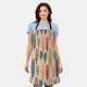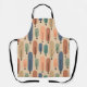 Ce tablier a un design moderne du milieu du siècle de longs ovales en pêche, vert, bleu, turquoise et brun clair avec des lignes noires avec des cercles sur les extrémités.
